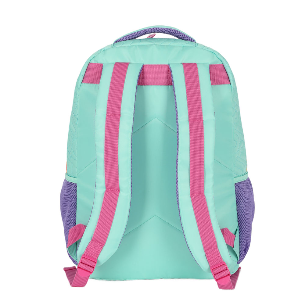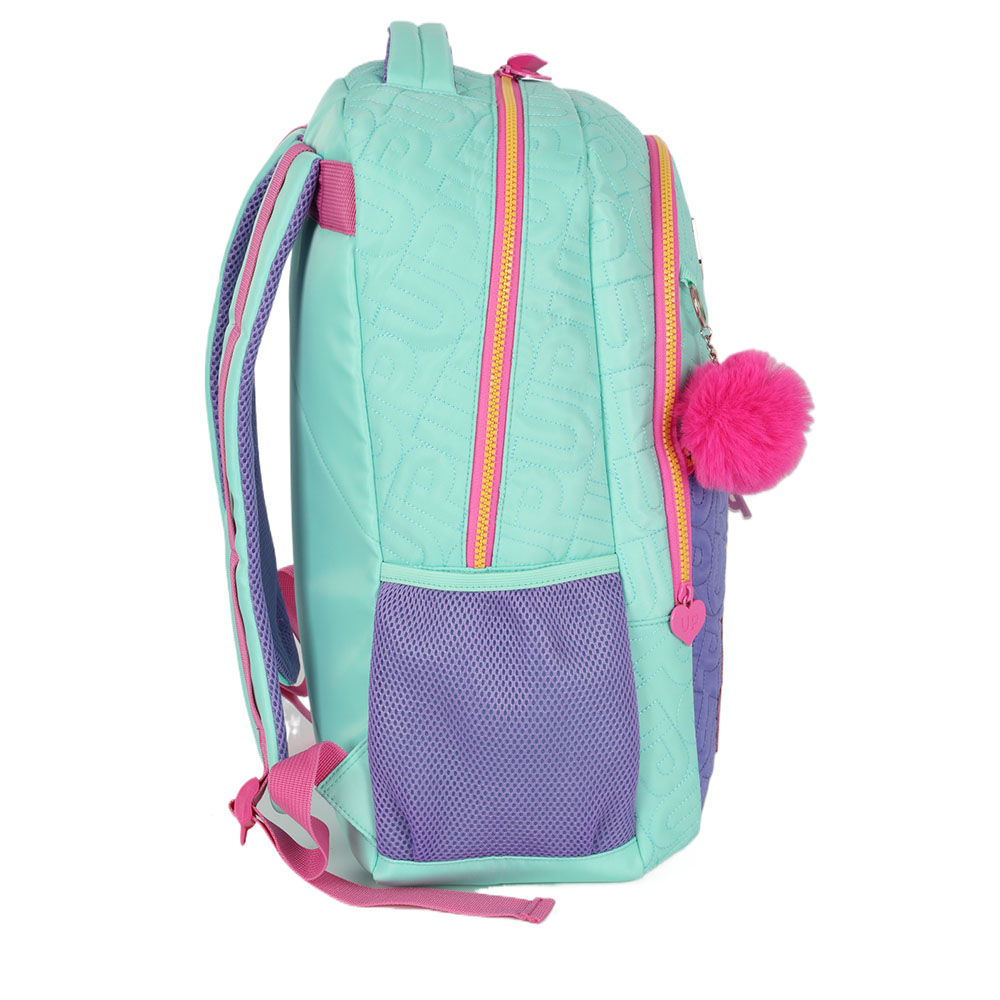 2 Bolsos frontais, 2 bolsos laterais de redinha e 1 compartimento central espaçoso
