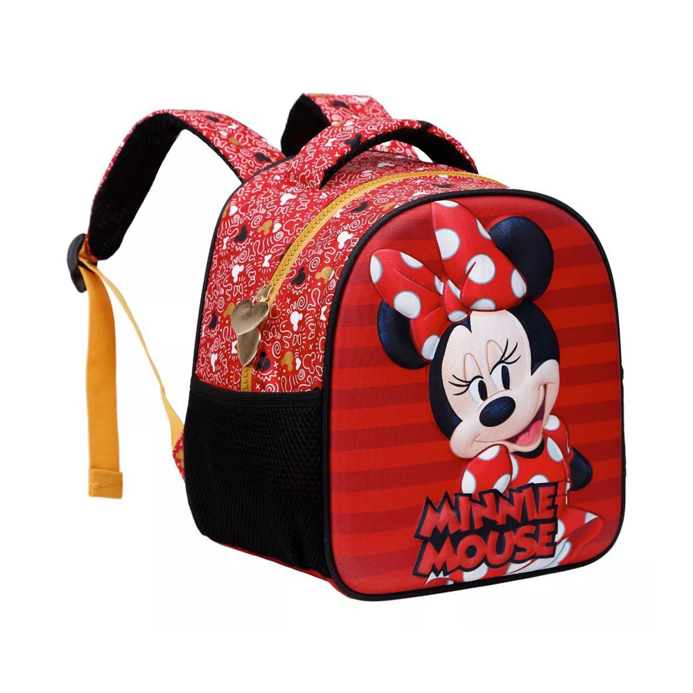 Mini Mochila Minnie 3D da Xeryus é produzida em poliéster resistente e estampado. O painel frontal é de EVA 3D Nylon (relevo). O zíper tem puxadores personalizados e piping forrado. As alças são reguláveis.