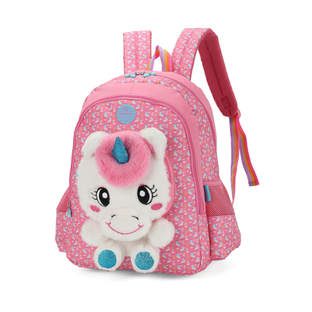 As estampas lúdicas adornam cada centímetro da mochila, criando um cenário de cores vibrantes e personagens adoráveis. Equipada com três compartimentos espaçosos, é perfeita para organizar todos os materiais escolares de maneira divertida e prática. O bolso frontal exibe um unicórnio de pelúcia em 3D, adicionando um toque de fofura e magia à mochila.