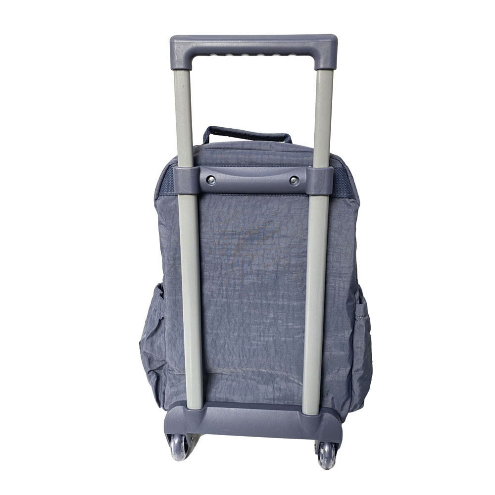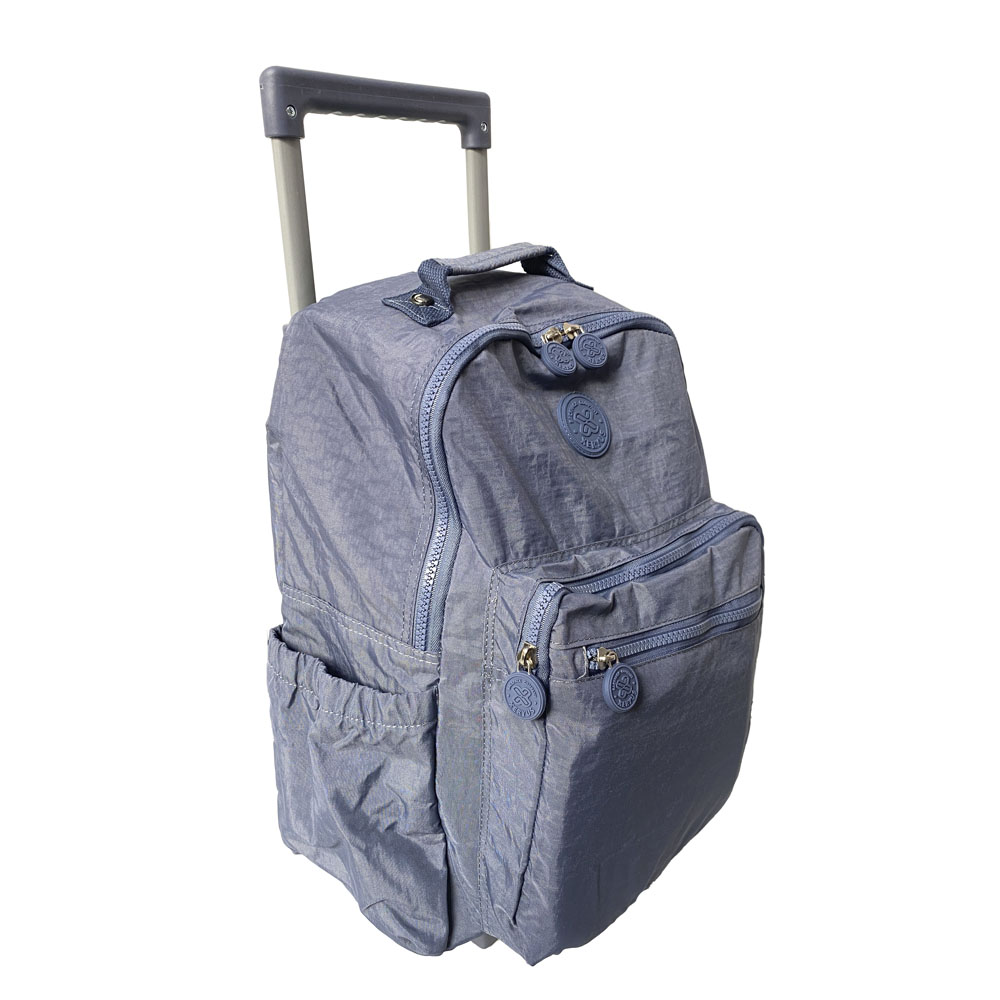 Mochila com Rodas produzida em material crinkle resistente . Possui 1 compartimento principal amplo com zíper, 2 bolsos frontais com zíper , 2 bolsos laterais, puxadores emborrachados personalizados. Alças acolchoadas com regulagem para maior conforto e versatilidade. Costas acolchoadas. Acompanha chaveiro de pelúcia.