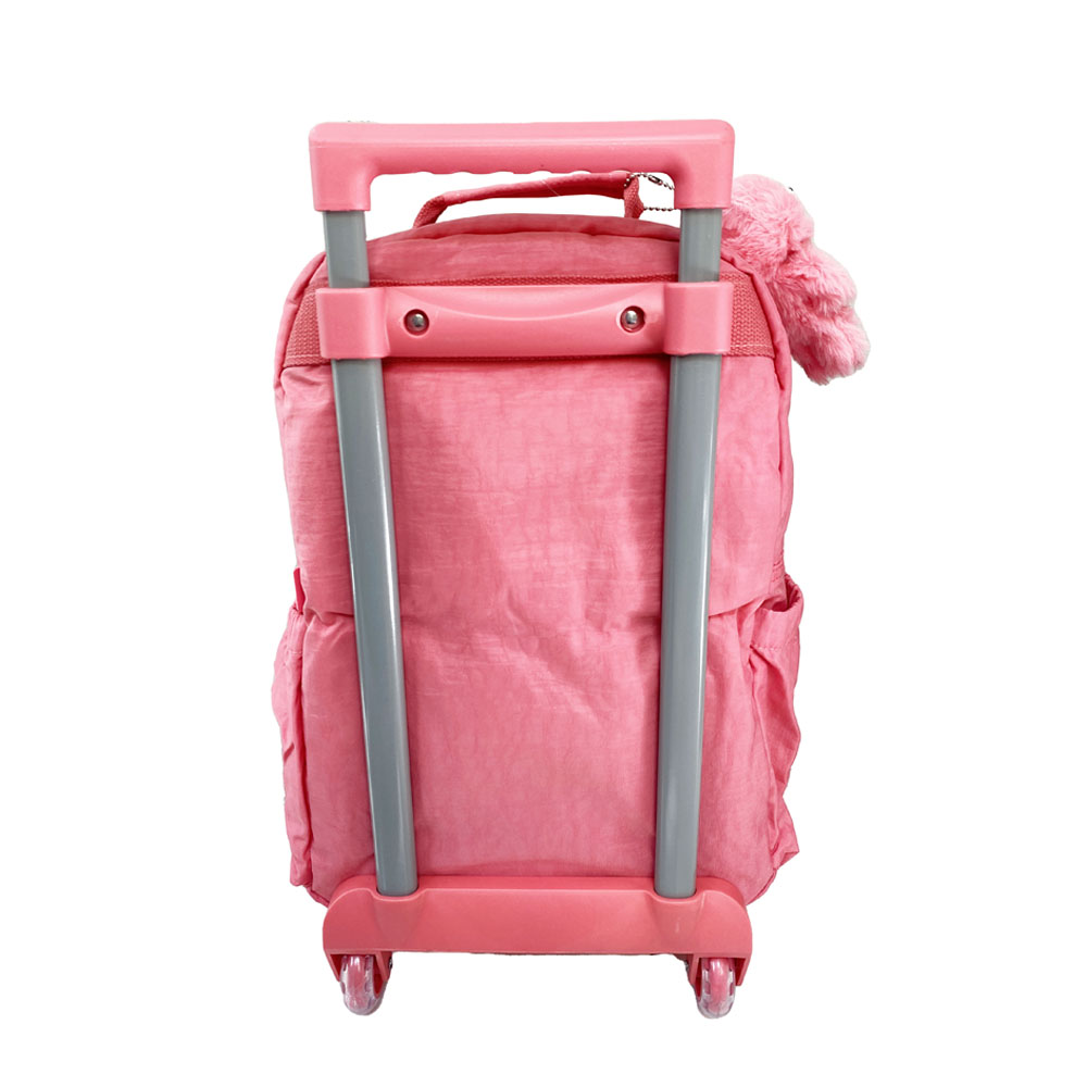 Mala com Rodas produzida em material crinkle resistente . Possui 1 compartimento principal amplo com zíper, 2 bolsos frontais com zíper , 2 bolsos laterais, puxadores emborrachados personalizados. Alças acolchoadas com regulagem para maior conforto e versatilidade. Costas acolchoadas. Acompanha chaveiro de pelúcia.