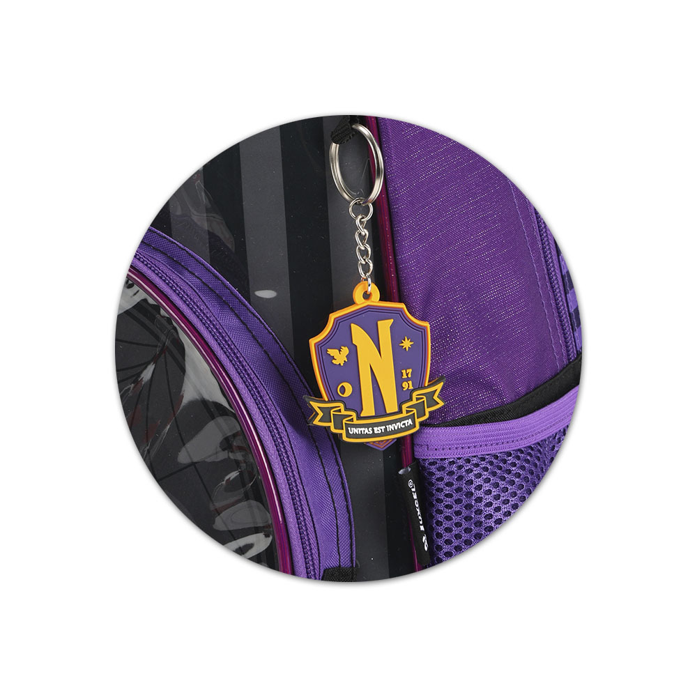 A mochila Costas Wandinha Addams Luxcel é uma escolha elegante e funcional para acompanhar as estudantes em todas as aventuras escolares.
