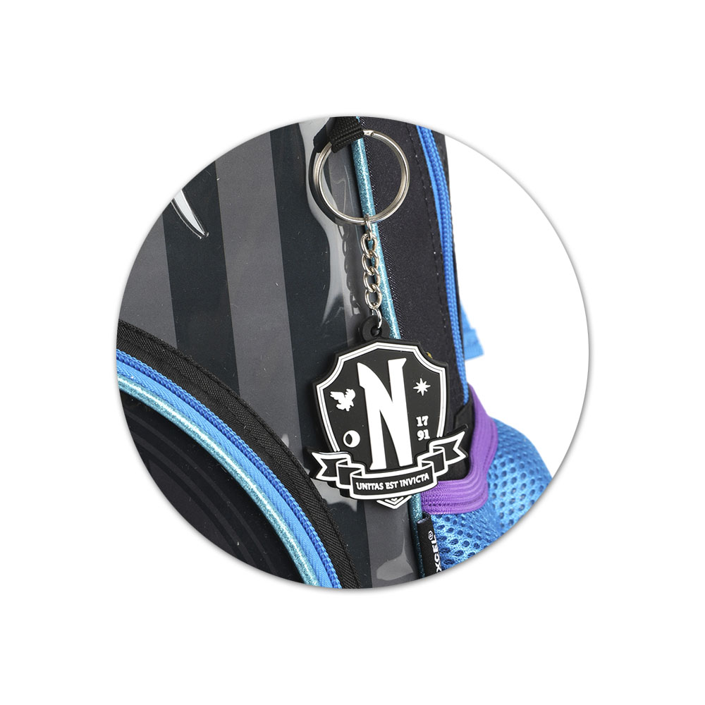 A mochila Costas Wandinha Addams Luxcel é uma escolha elegante e funcional para acompanhar as estudantes em todas as aventuras escolares.