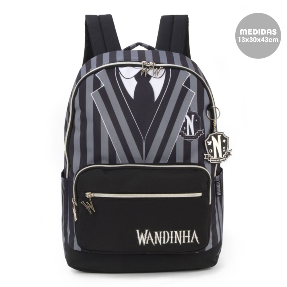 Mochila Costas Uniforme Wandinha Addams Preto Luxcel