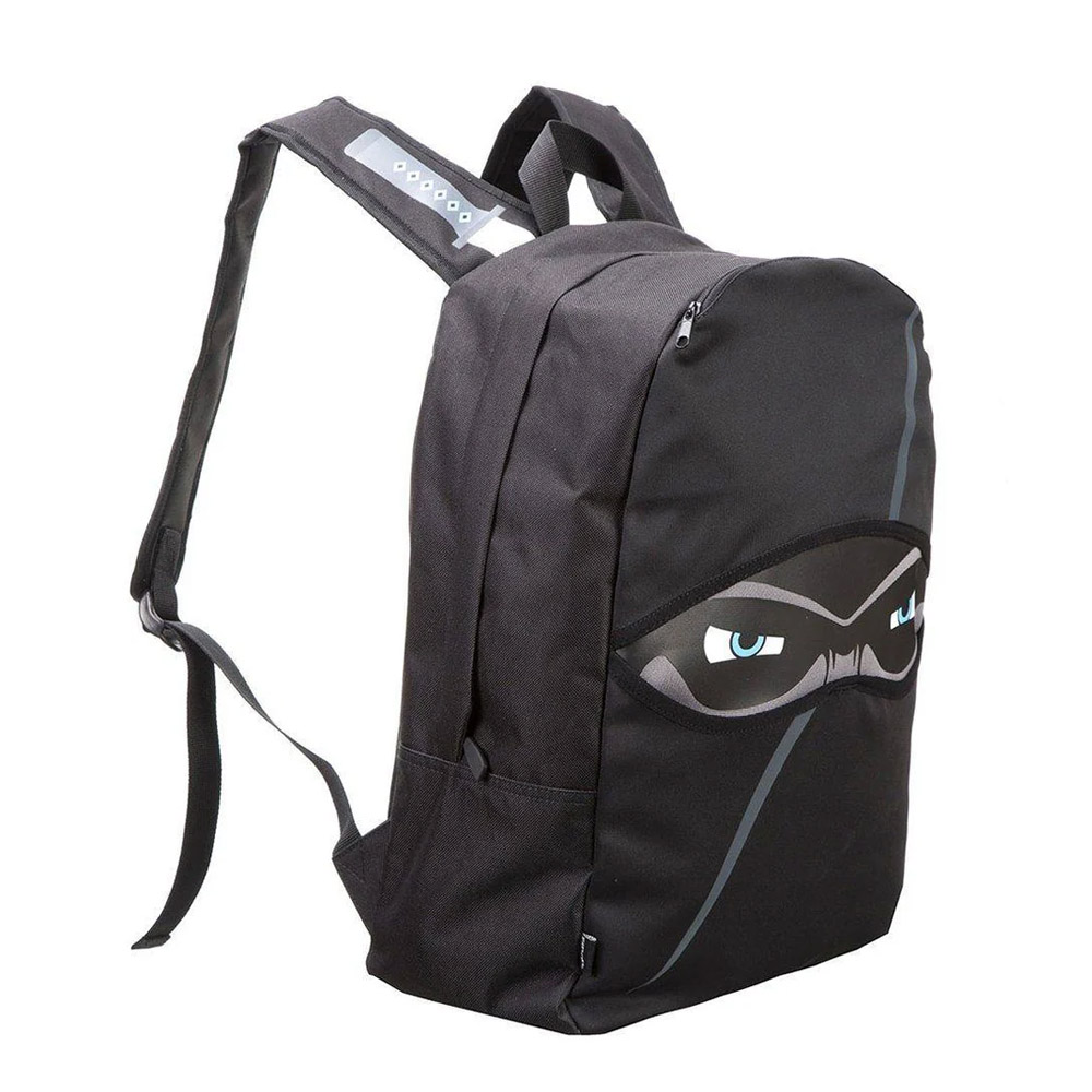Mande seus filhos para a escola com esta mochila Ninja exclusiva. O design elegante e os olhos misteriosos tornam-no algo que seu filho ficará animado em carregar. No interior, um compartimento principal acomoda um laptop de até 14″ de largura. Também possui um compartimento com zíper acima dos “olhos” para itens menores e dois bolsos laterais para manter água e outras bebidas ao seu alcance.