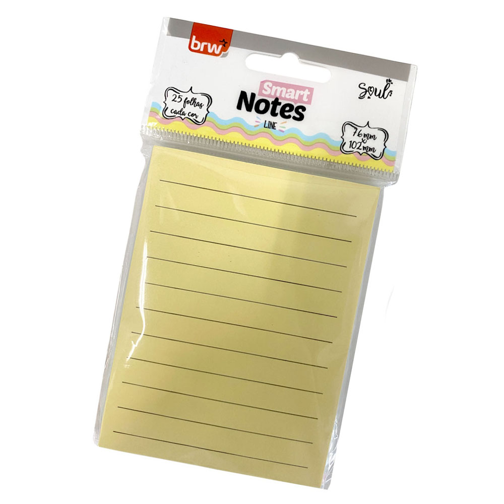 “Bloco Adesivo Tons Pastéis Pautado 76 x 102mm C/ 100 Fls BRW