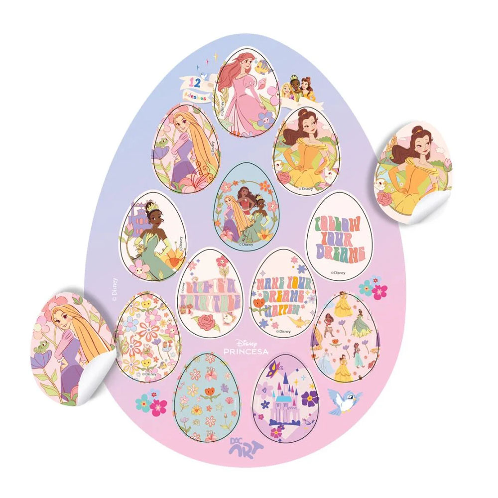 Além disso, para tornar a brincadeira ainda mais envolvente, o kit inclui 1 cartela com 12 adesivos temáticos das princesas e 4 folhas de pintura, proporcionando diversão e criatividade sem limites. Com as adoradas princesas da Disney estampando essa coleção, a Páscoa se transforma em um momento ainda mais especial e encantador.