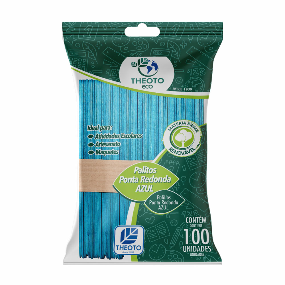 Palito Sorvete Ponta Redonda Azul com 100 Unidades Theoto