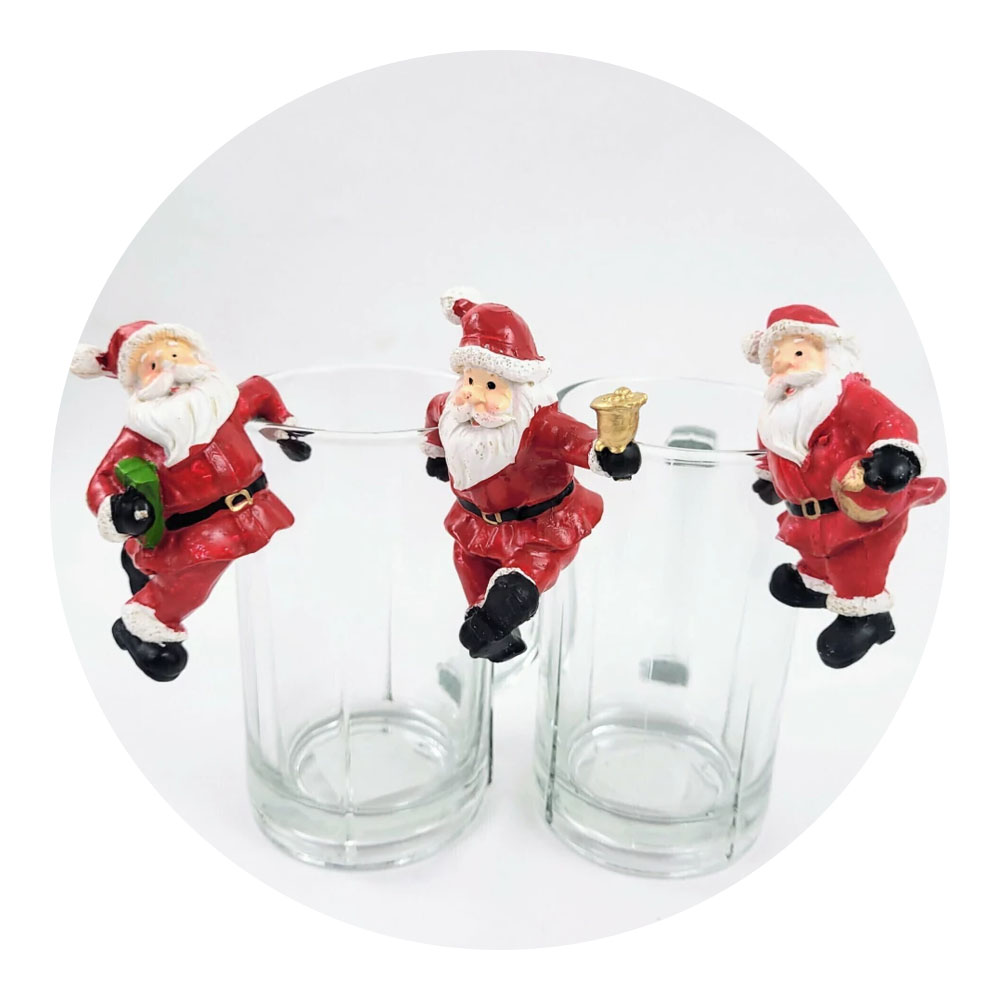 Papai Noel Decorativo p/ Pedurar em Copos 9cm 1und Sortido