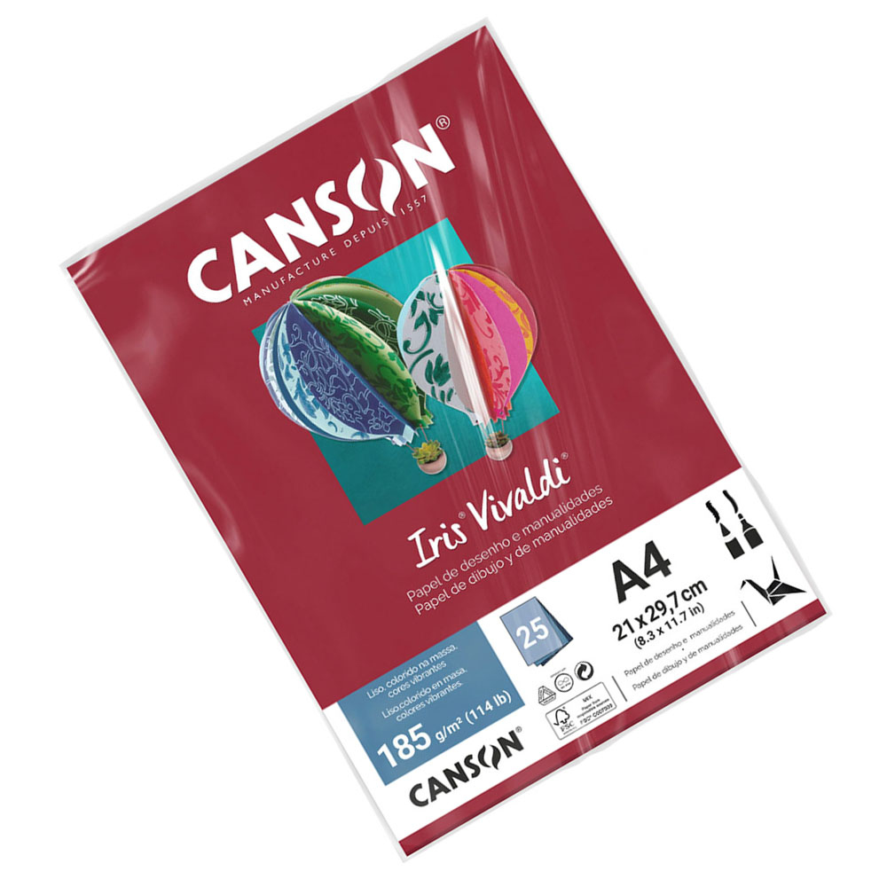 Canson® Iris Vivaldi® é uma cartolina que oferece uma superfície lisa de alta qualidade em ambos os lados, com uma gama de cores tingida em massa, perfeito para Artes e Ofícios.