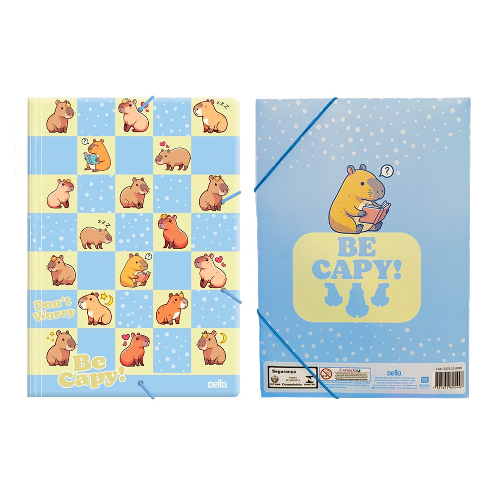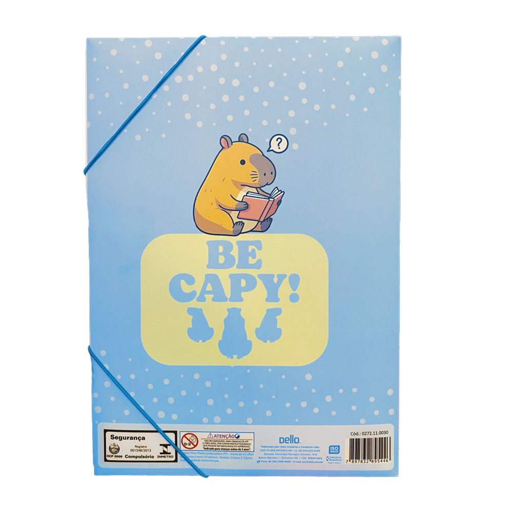 Se a sua rotina precisa de um toque de alegria e estilo, a Pasta Aba Elástica Plástica A4 Be Capy Azul chegou para conquistar seu espaço. Febre nas papelarias de todo o país, essa pasta traz a adorável estampa da capivara — símbolo de tranquilidade e carisma — para transformar seu dia a dia.