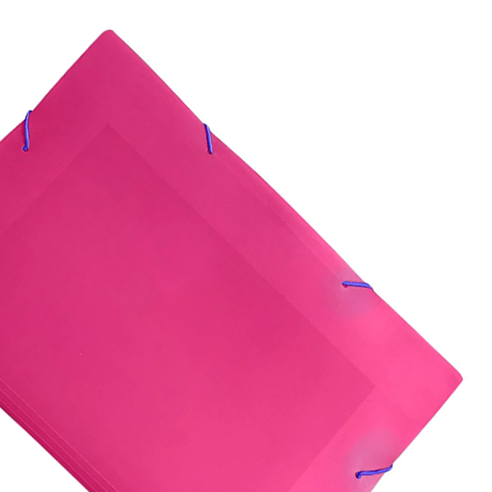 Fechamento com elástico que permite flexibilidade e evita que o conteúdo caia da pasta.
