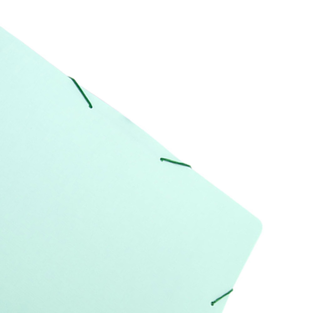 Fechamento com elástico que permite flexibilidade e evita que o conteúdo caia da pasta.