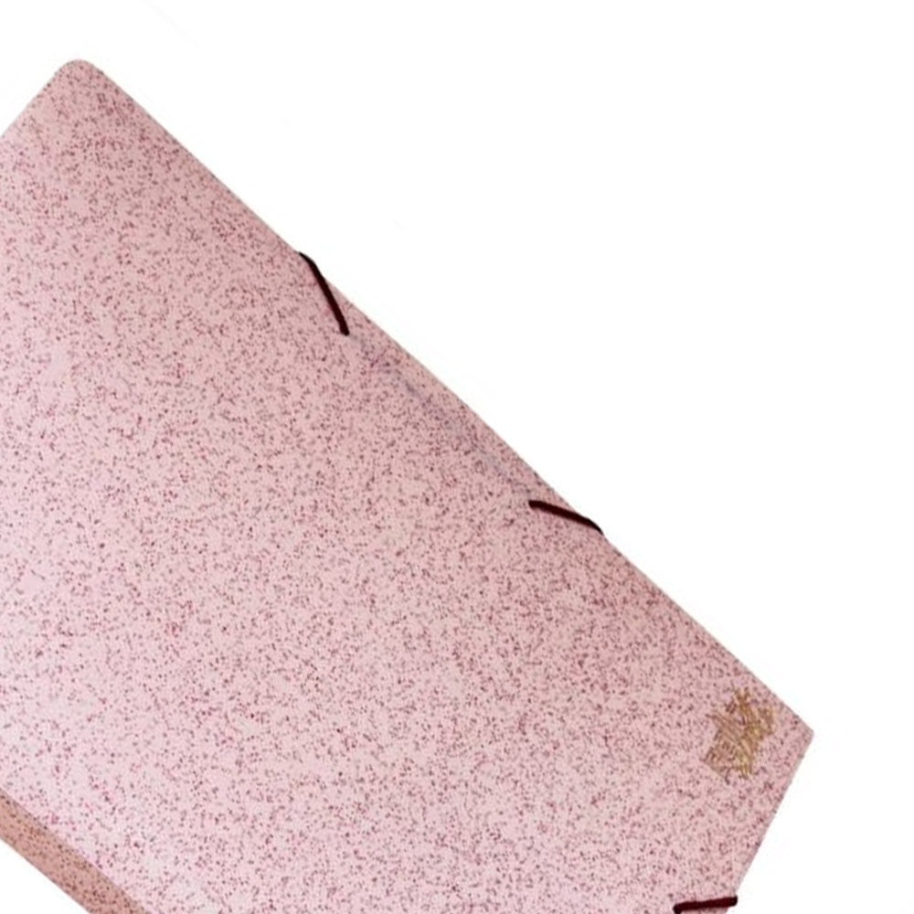 Fechamento com elástico que permite flexibilidade e evita que o conteúdo caia da pasta.