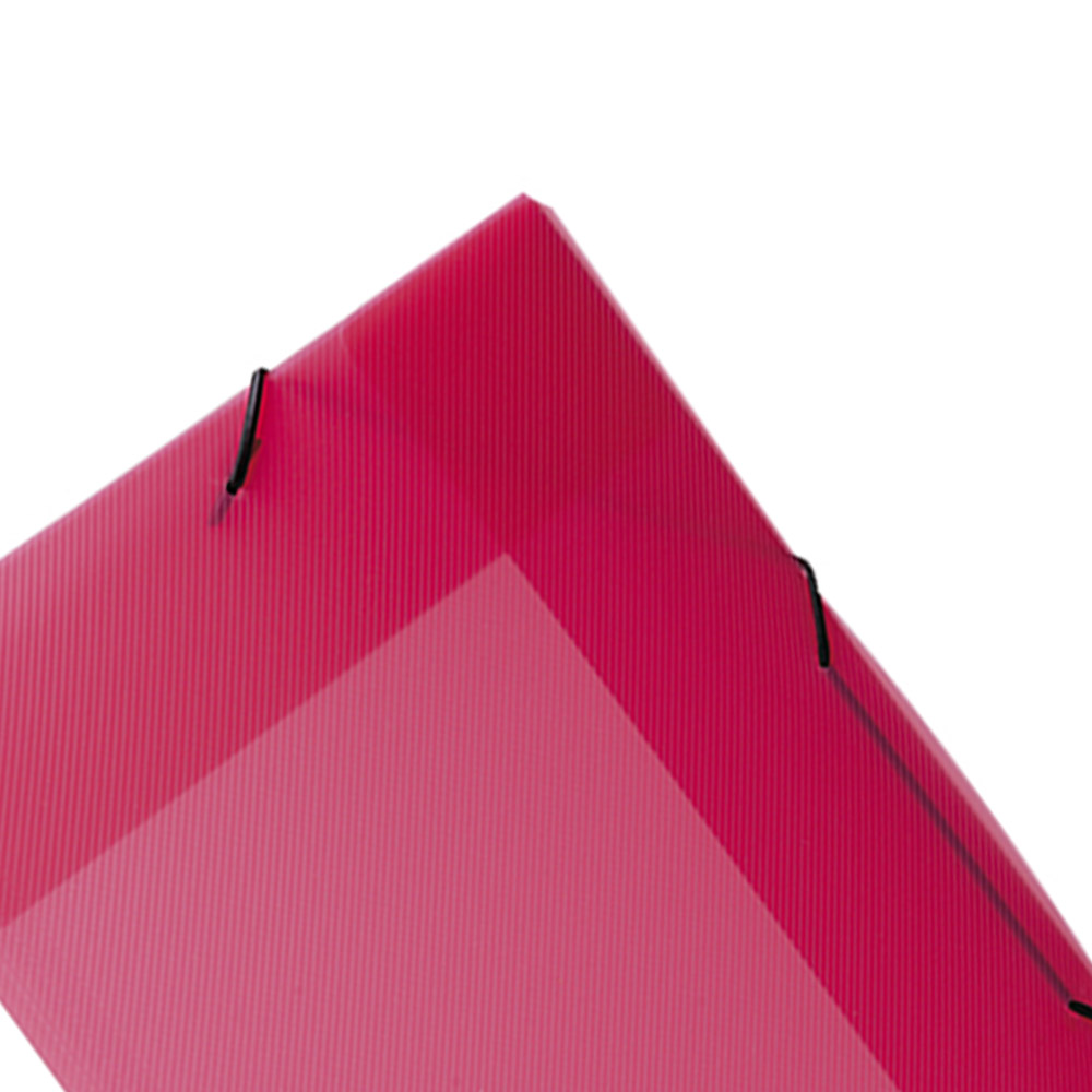Fechamento com elástico que permite flexibilidade e evita que o conteúdo caia da pasta.