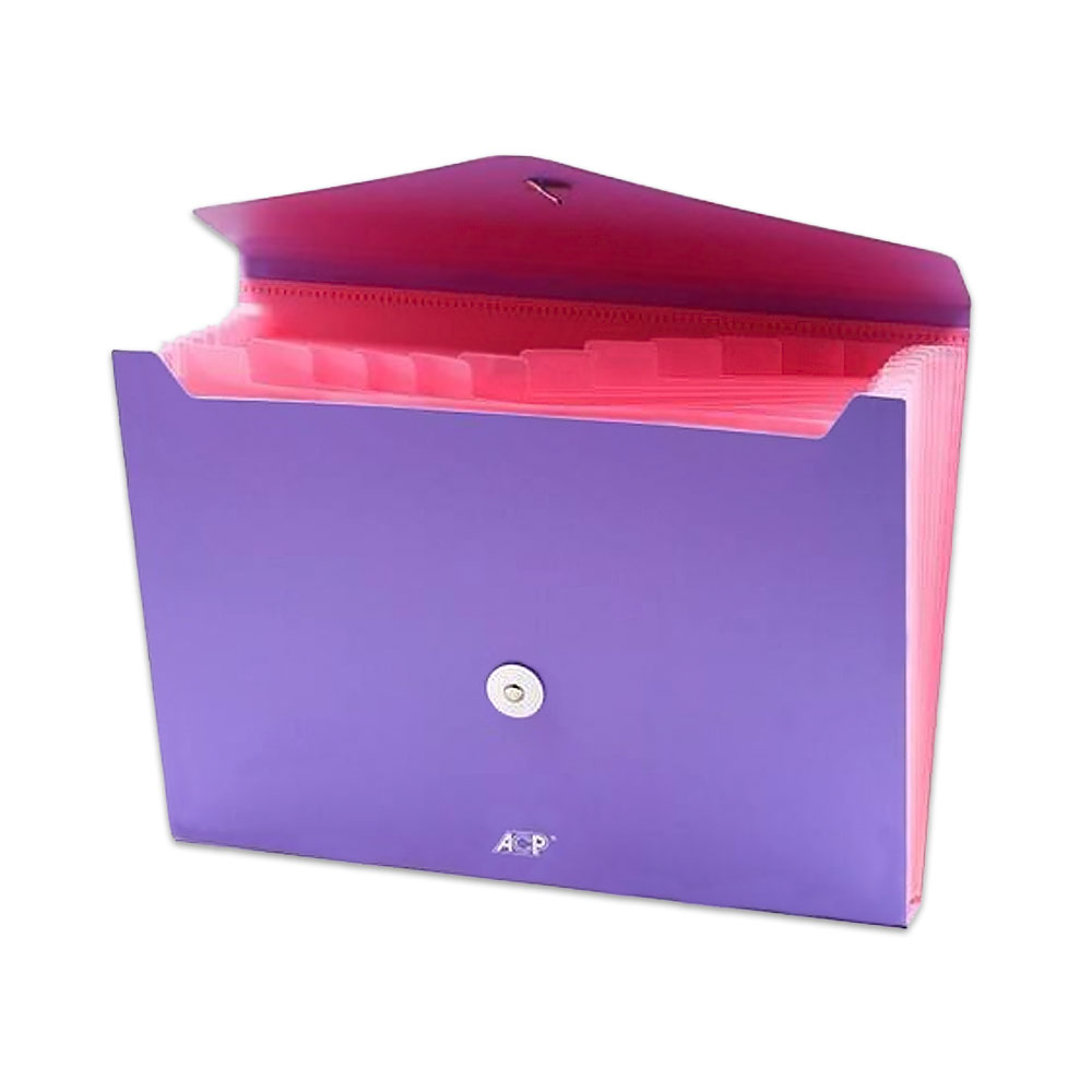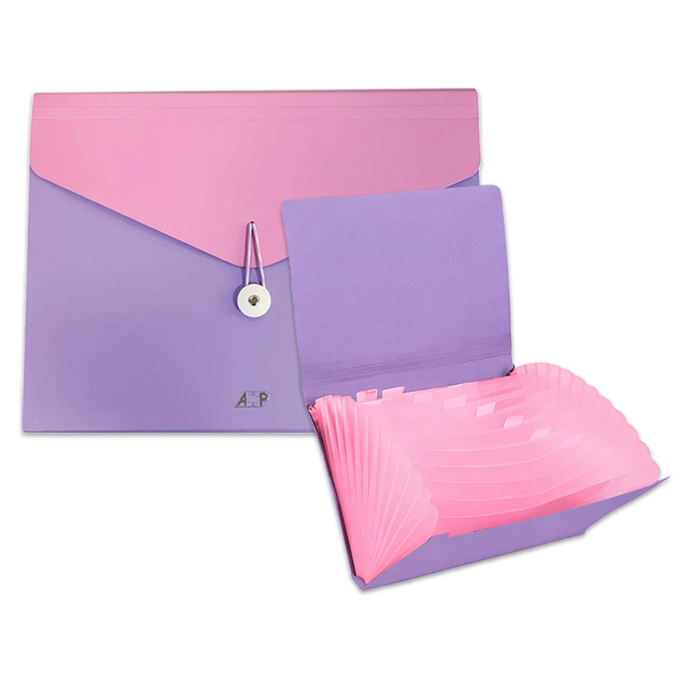 Pasta Sanfona A4 12 Divisórias Rosa e Lilás ACP