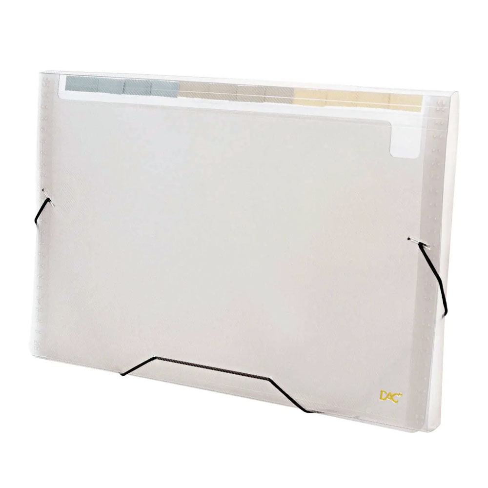 Pasta Sanfonada A4 12 Divisorias Transparente Dac Organize seus documentos com mais praticidade, esta pasta é ideal para você guardar vários documentos e papéis importantes. Contando com 12 divisões, a pasta Sanfonada pode separar em ordem alfabética ou importância. Possui etiquetas coloridas para identificação. É ideal para folhas A4. A DAC ajuda você a organizar seu dia a dia!