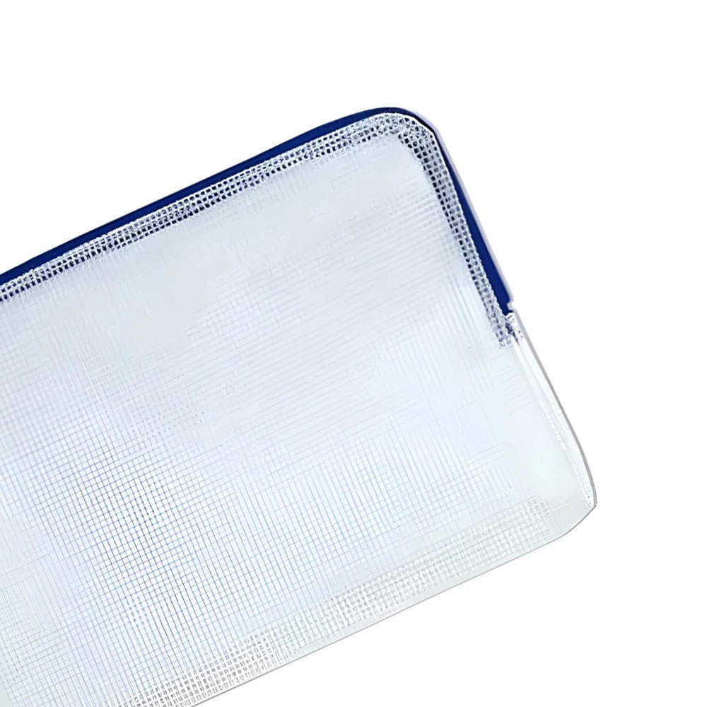 Pasta zíper com costura boa qualidade, zíper azul, pasta transparente. Pode guardar papelarias, documentos, acessórios, pertences, uso para viagem, malote, etc.