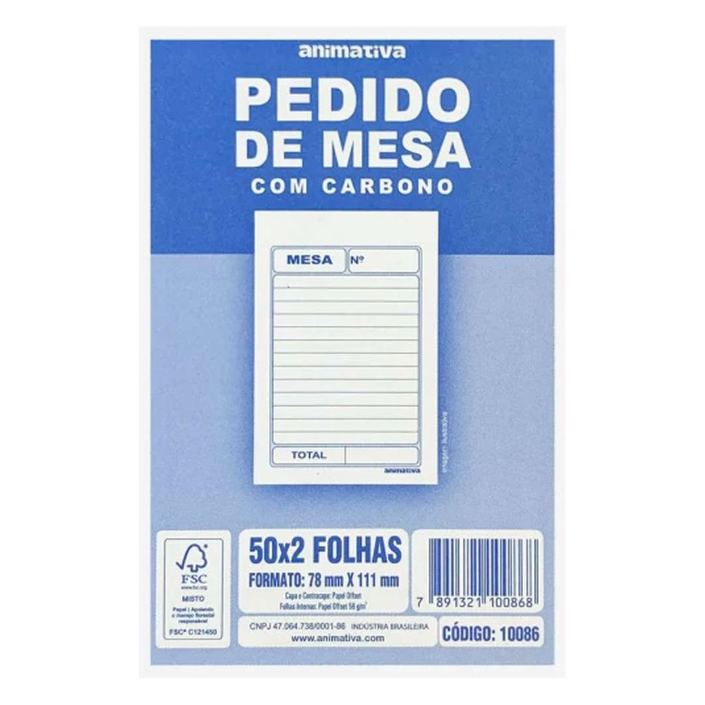 Contém 1 bloco com 50 folhas de Pedido de Mesa e 50 folhas de Carbono
