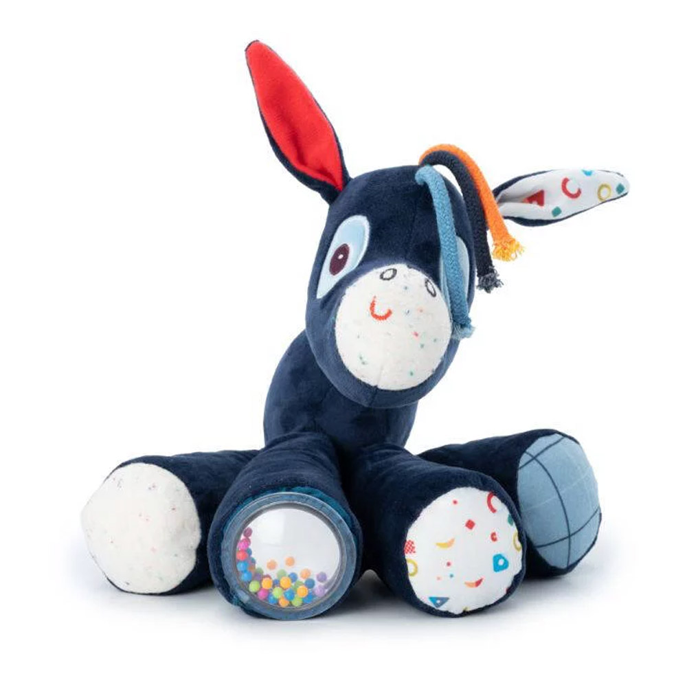 Ignace, o burrinho, zen, tranquilo, é uma pelúcia linda e sensorial, para bebês e crianças. Suas patas e orelhas produzem sons diversos, com barulhinho ao pegar semelhante a papel amassado, SEU NARIZ produz som de burro, as patas fazem som de pio, chocalho com bolinhas e som de campainha.