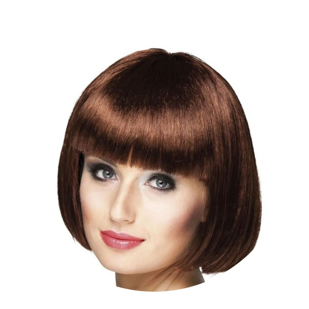Peruca Chanel com Franja Castanho Marrom Fantasia