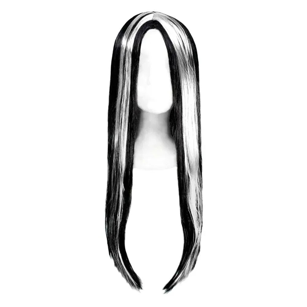 Peruca Sintética Mortiça Addams Preto Mecha Branca Fantasia