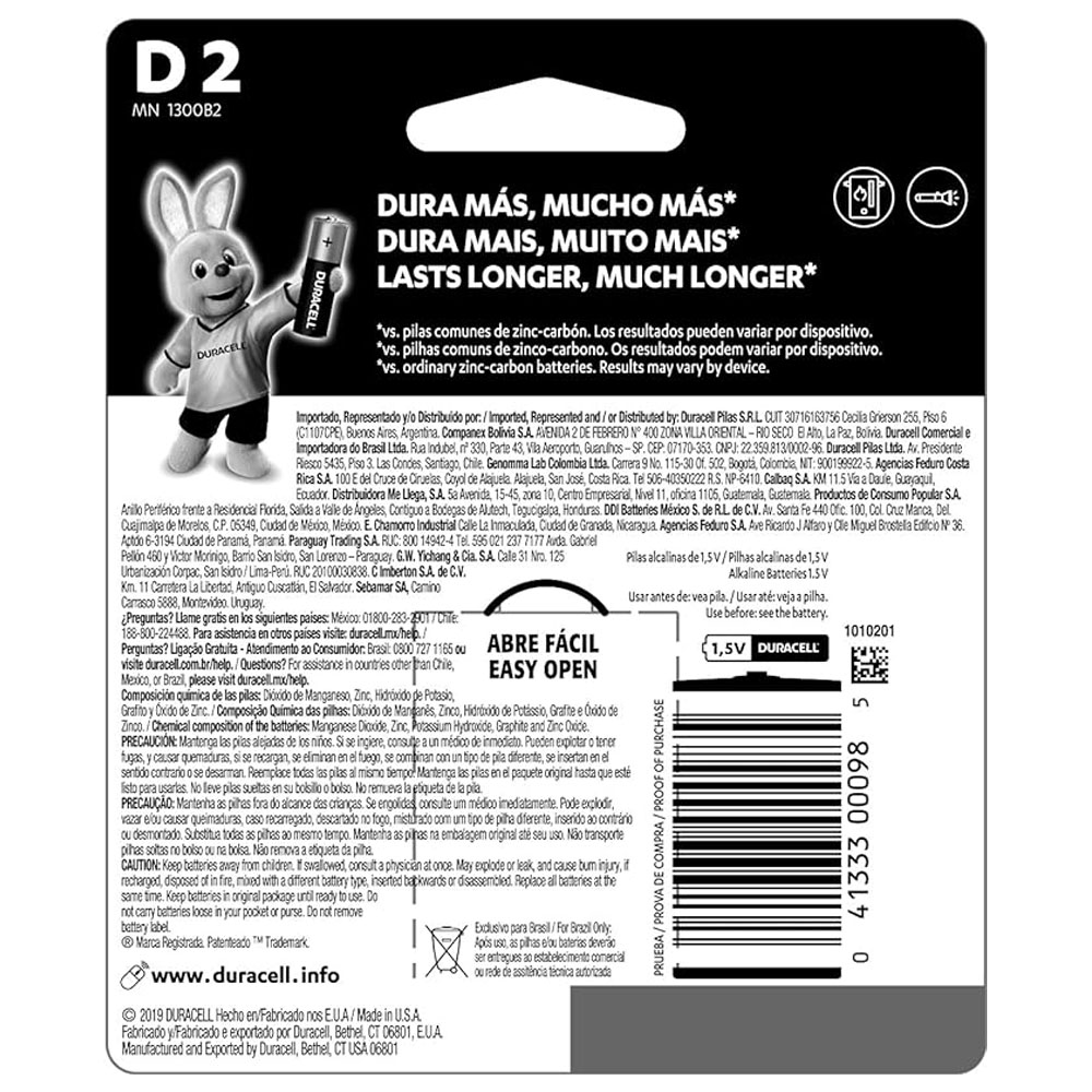 As pilhas D proporcionam energia confiável aos aparelhos do dia a dia, como brinquedos, controles remotos, consoles de jogos portáteis, fechaduras eletrônicas, lanternas, etc. Além disso, a tecnologia de Duracell preserva a energia das pilhas que ainda não foram usadas, por até 10 anos.