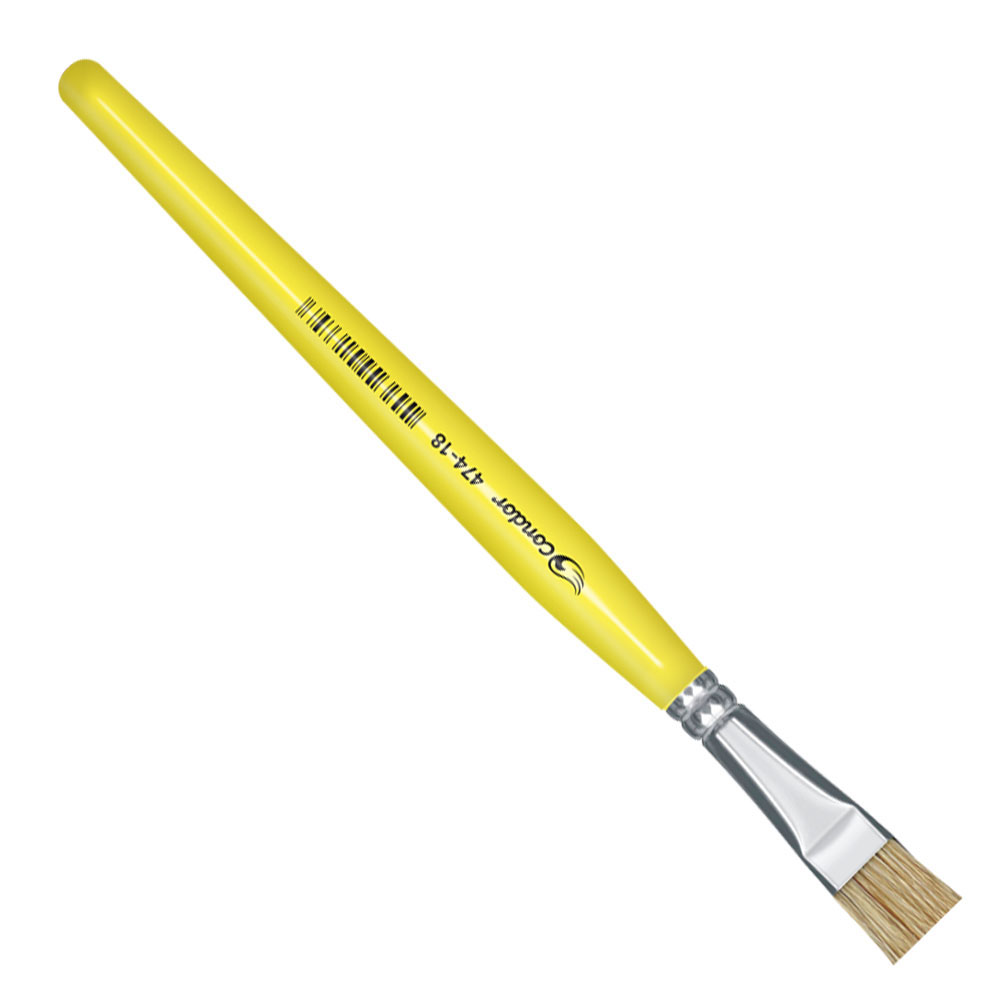 Pincel Escolar Condor 474 Tamanho 18 Chato Cabo Curto O Pincel Condor 474 é utilizado para pintura por espalhar melhor a tinta. Possui cabo curto e cerdas naturais. A Linha Condor 474 é utilizada principalmente na escola Características: Número 474 – 18 Tamanho das cerdas: 1,8cm Tamanho total do pincel 16 cm de comprimento Cabo plástico amarelo Formato chato Composto de cerdas naturais chatas alongadas Cuidados com os pincéis: sempre limpe os pincéis após a utilização para que não danifique o pincel. Não é recomendável deixar os pinceis imersos em soluções (água ou solventes) de cabeça para baixo para não amassar as cerdas. Artistas em pintura profissional afirmam que não se deve utilizar o mesmo pincel, mesmo que limpo, em tintas a base de óleo e água para que as cerdas tenham maior durabilidade.