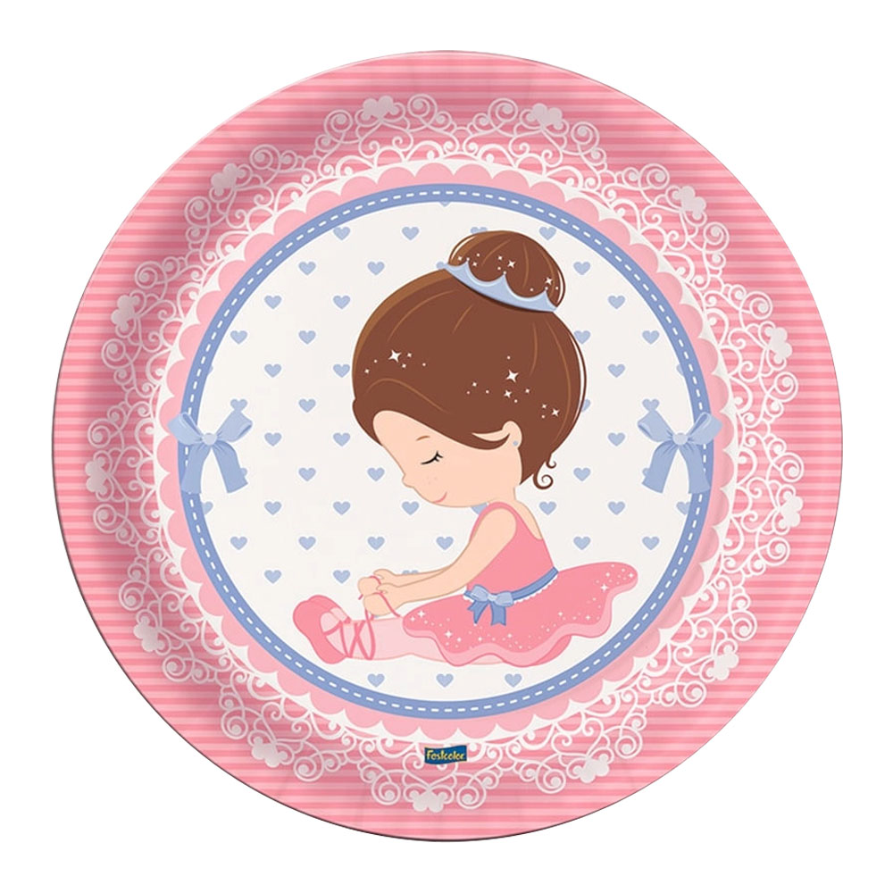 Prato Descartável Papel 18cm Bailarina para Festa/Aniversário