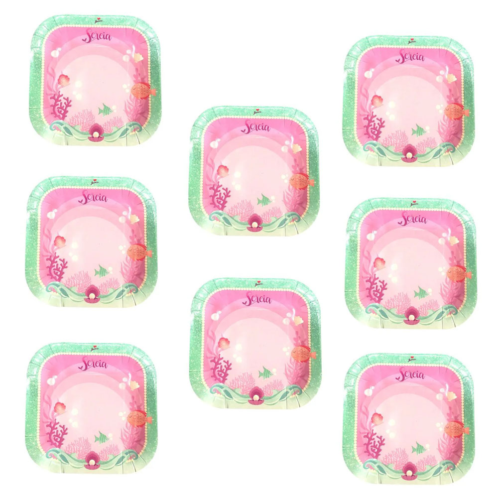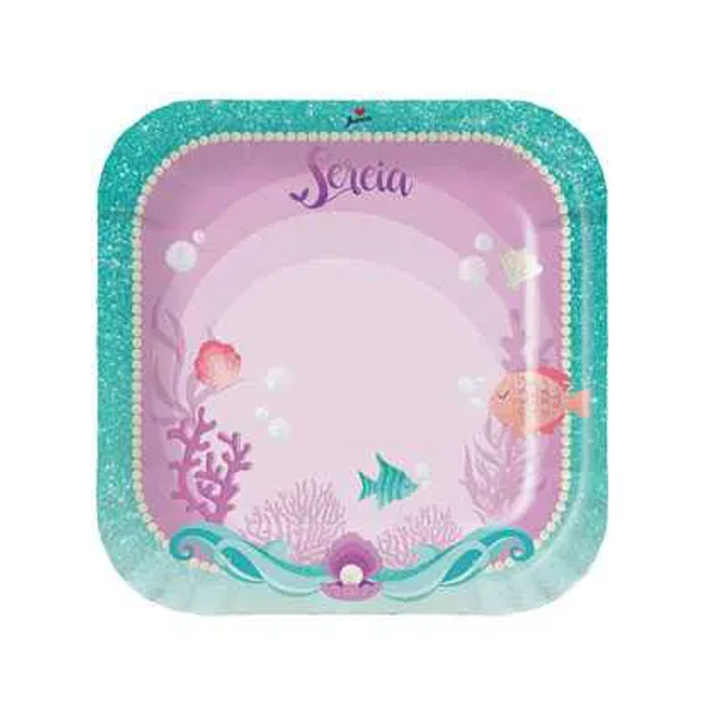 Prato Descartável Quadrado Papel 18cm Sereia para Festa/Aniversário