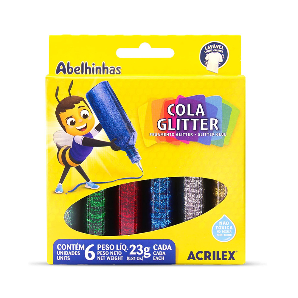 Foi desenvolvida para trabalhos escolares e artesanais. Ideal para atividades de desenvolvimento artístico. Possui um exclusivo bico aplicador que facilita a pintura, podendo ser usada também com esponja ou pincel, para fazer colagens, decorar e pintar sobre papel, papel cartão e cartolina. A Cola Glitter Acrilex não é tóxica e possui brilho intenso.