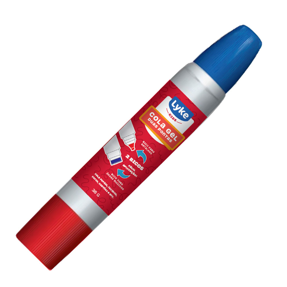 Cola gel LYKE de 2 pontas de 38g, um bico para detalhes e outros para áreas maiores, cola transparente é ideal para ser usado em papéis, tecidos, fotos e cartões.