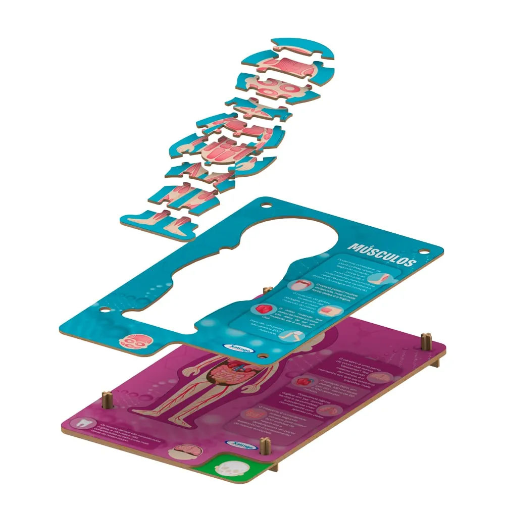 Com o jogo tridimensional em MDF da Linha de brinquedos STEAM Corpo Humano a