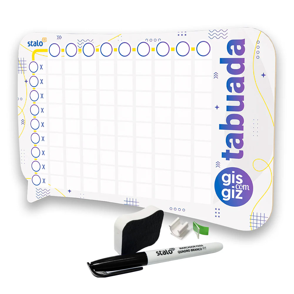 Nosso “Quadro Tabuada Gis com Giz” é perfeito para auxiliar as crianças no estudo e aprendizado da multiplicação, permite uma visão mais ampla dos números facilitando o desenvolvimento de uma sequência lógica. É feito em MDF (material resistente) e possui uma superfície envernizada que possibilita que você possa apagar e reescrever quantas vezes desejar. Acompanha porta caneta em polietileno, mini apagador e marcador para quadro branco. (Utilizar sempre com marcadores específicas para quadro branco).