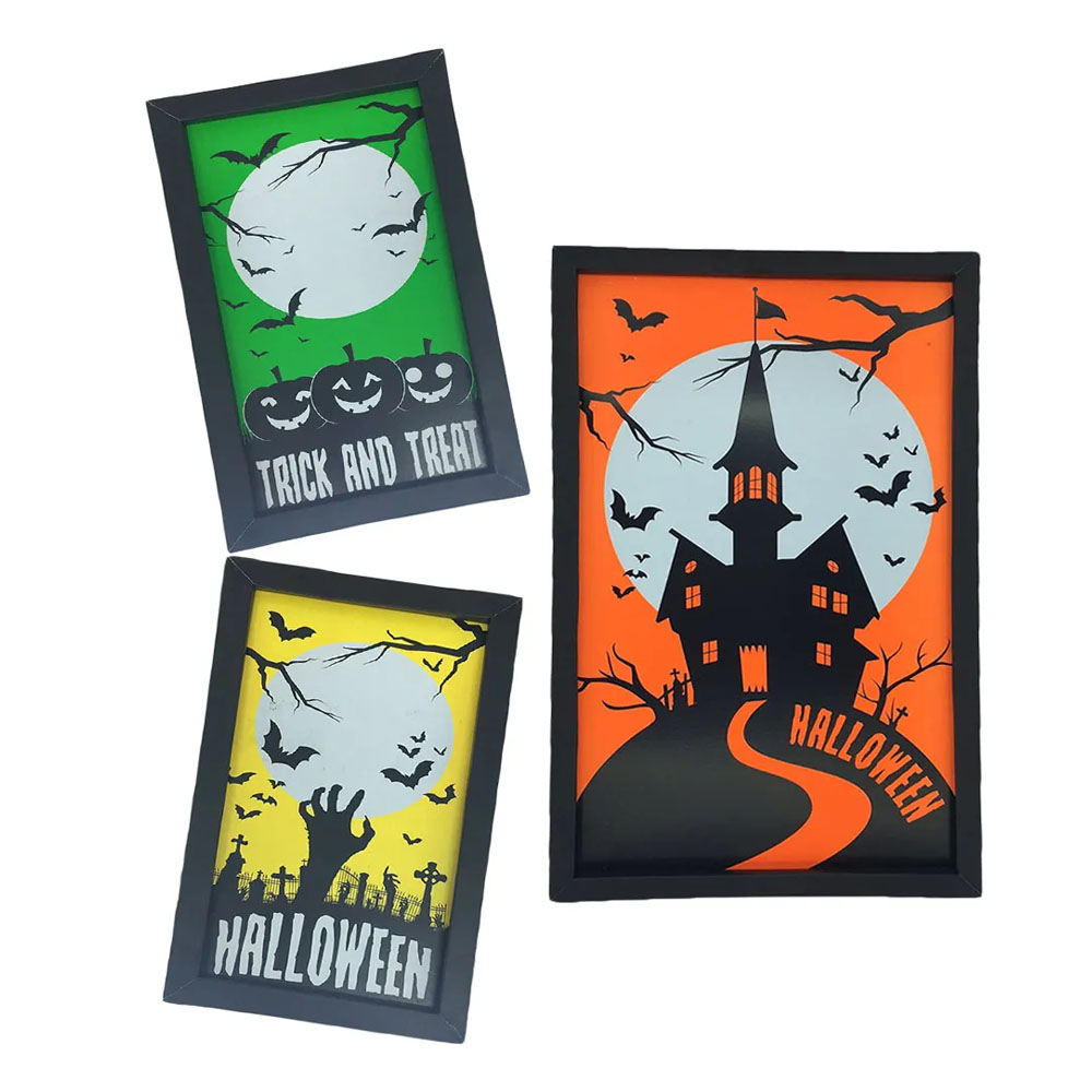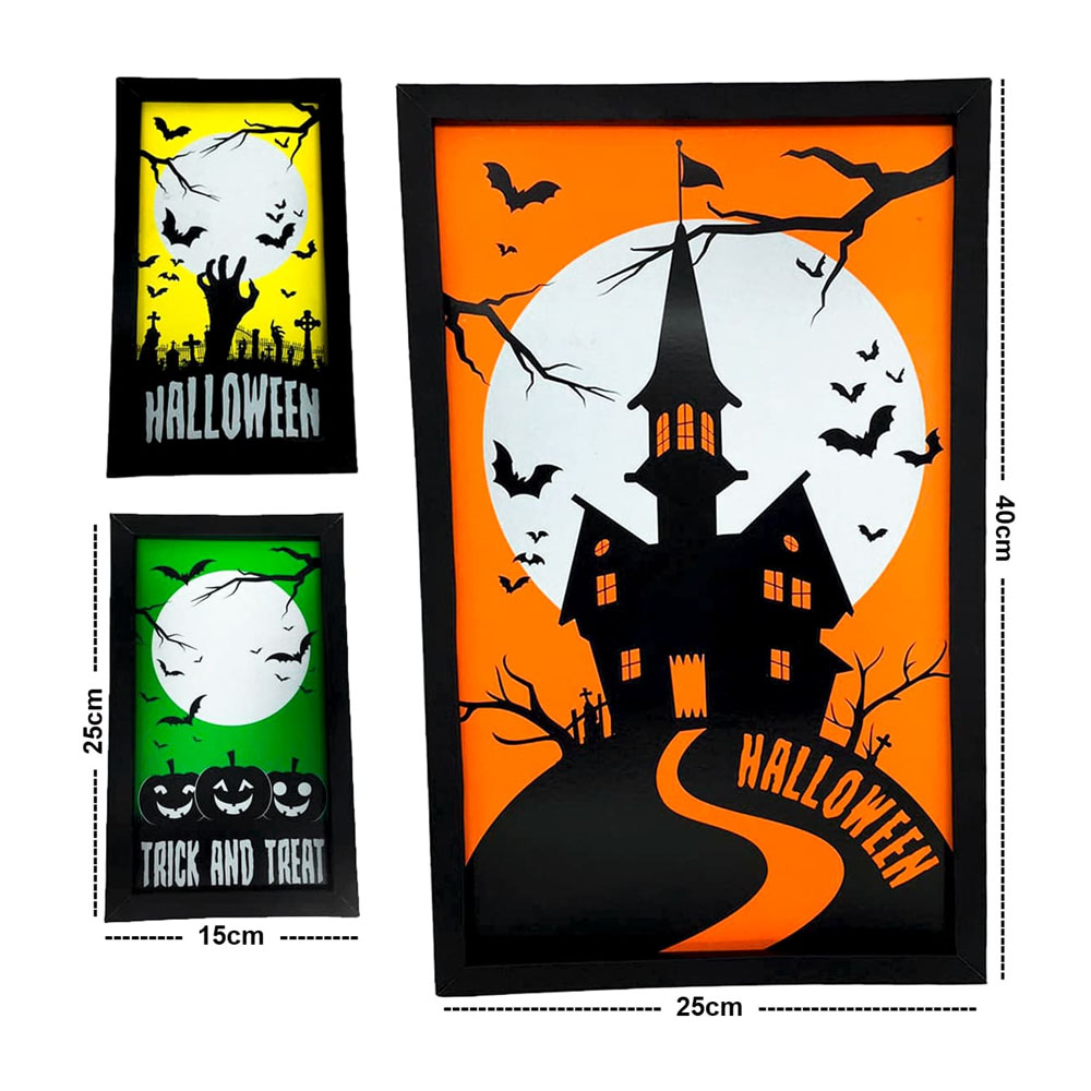 Quadros com Molduras 3 Peças Halloween Decorativas Neon