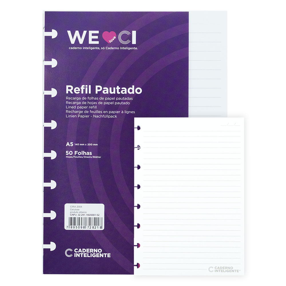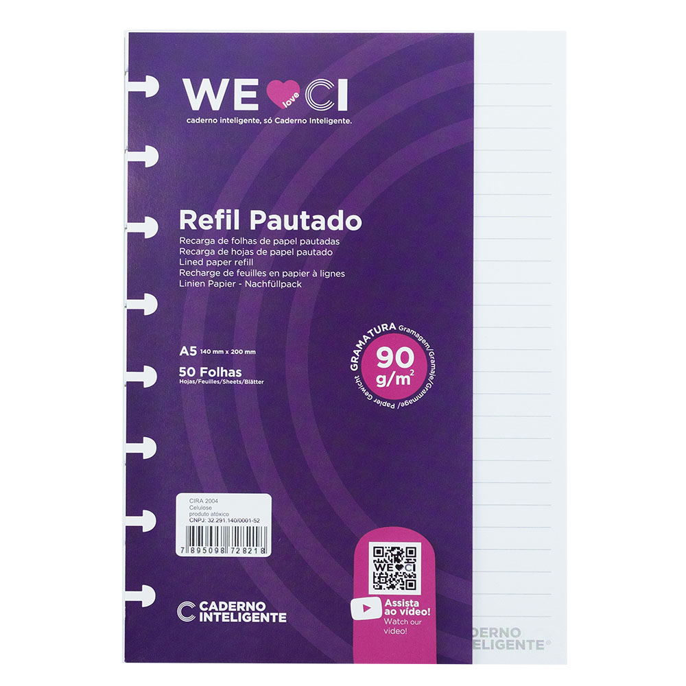 Precisa de mais folhas? Com os refis, seu caderno fica sempre novo, não importa o quanto você escreva! Você pode escolher entre as opções de refil 90g/m² (de gramatura padrão do Caderno Inteligente®, contendo 50 folhas).