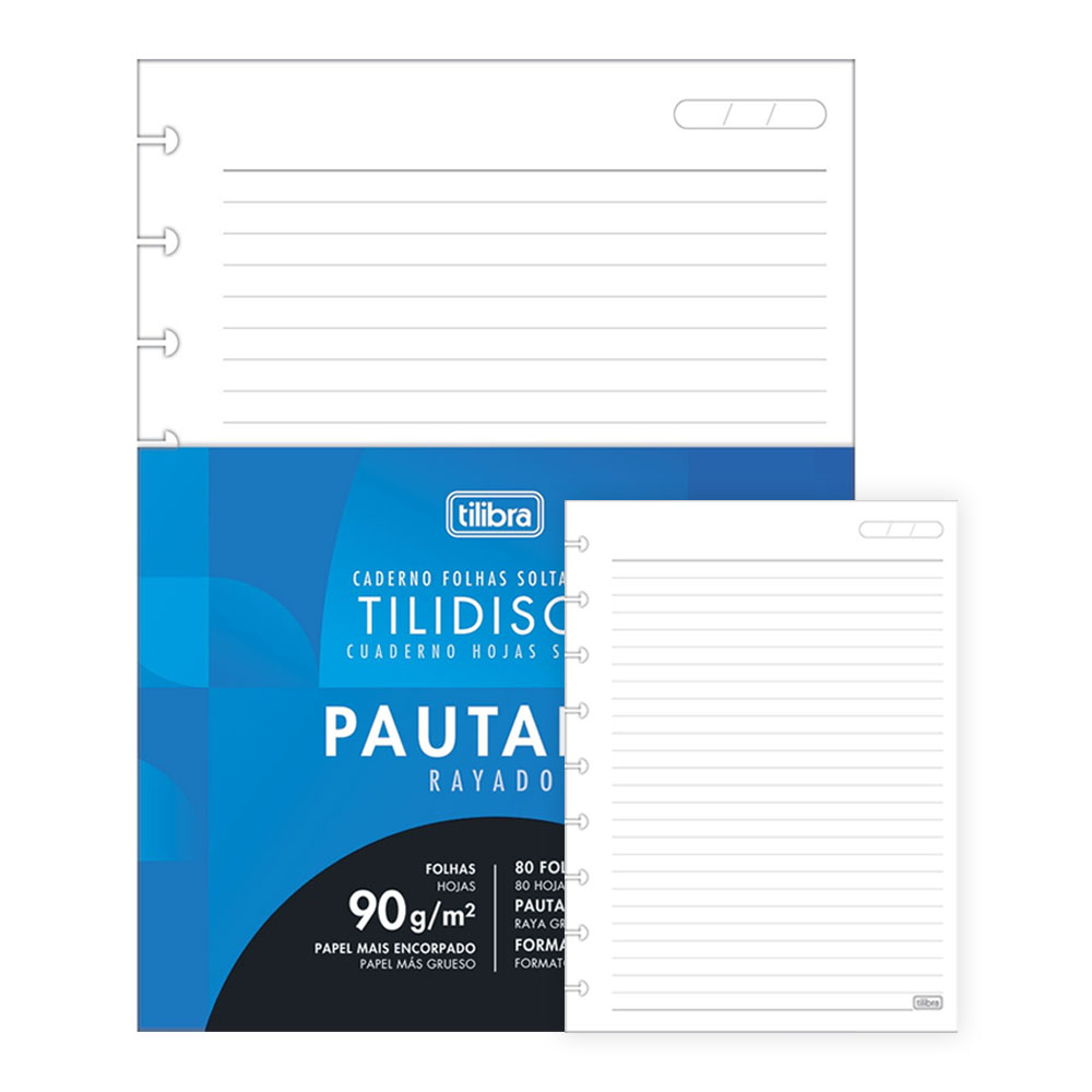 O Refil para Tilidisco Colegial Pautado 80 Folhas tem gramatura de 90 g/m² para facilitar o encaixe dos discos e oferecer mais possibilidades de escrita com diversos tipos de canetas. O produto possui furação para 9 discos.