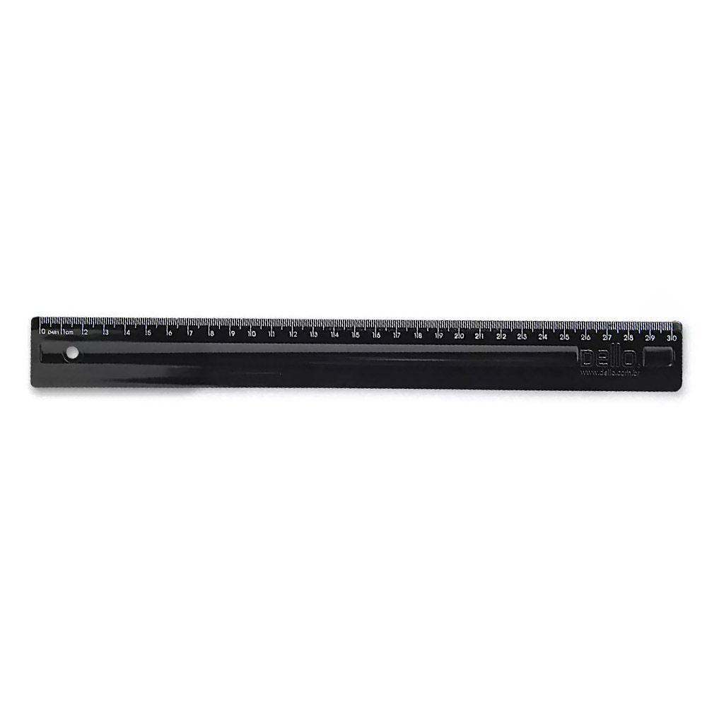 Régua de 30cm é injetada em poliestireno e sua resistência é garantida pela espessura de 3,4 mm. Além disso possui apoio central para os dedos o que permite mais firmeza de manuseio e precisão no traçado. Ótima para crianças que estão iniciando o aprendizado do traçado com régua e excelente para guiar leitura de textos.
