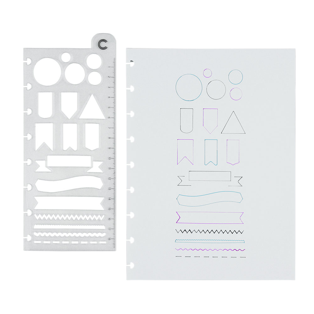 Feita para aqueles que amam um caderno organizado, a Régua Stencil Inspiradora apresenta opções para criar títulos incríveis,