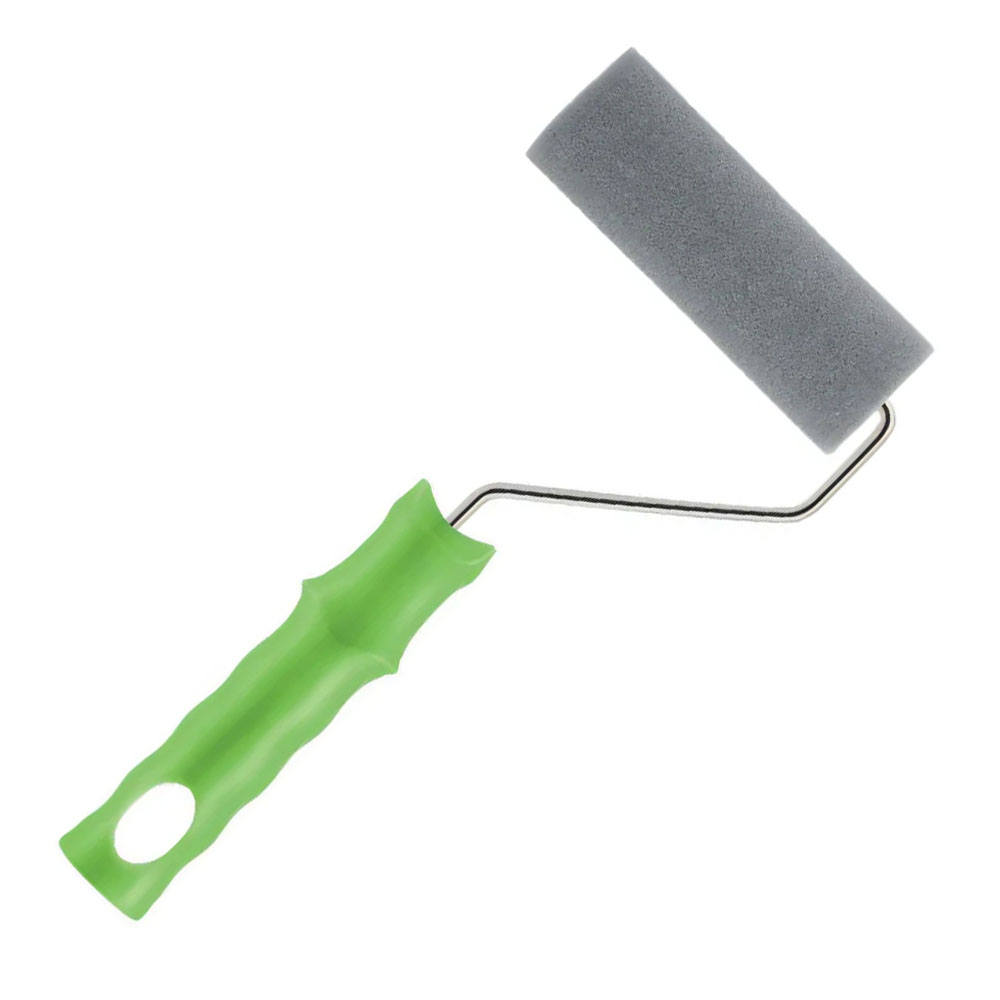Rolo de espuma cinza 100% poliéster. Ideal para superfícies metálicas e madeiras lisas com tintas látex, óleo, esmalte, acrílica e verniz.