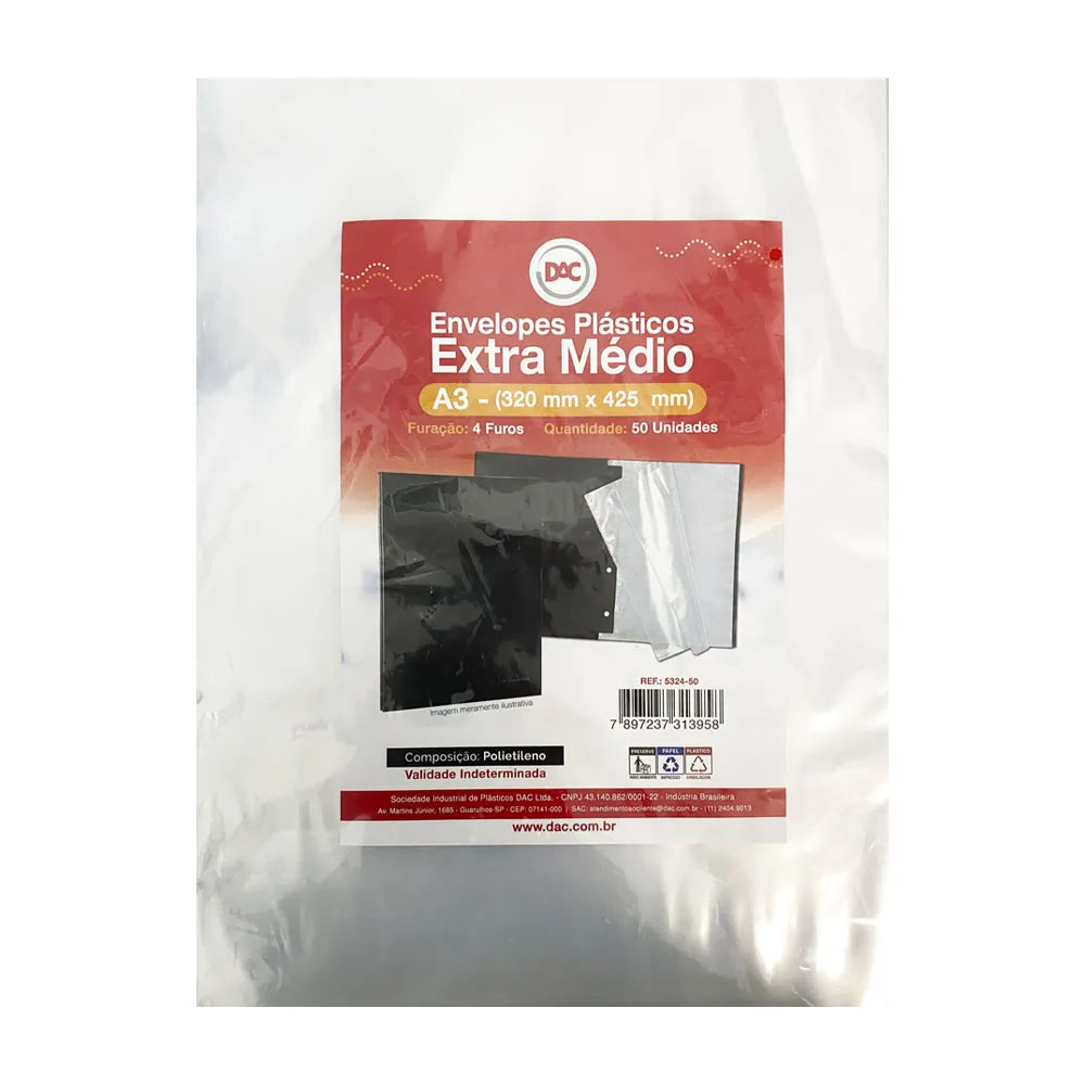A DAC é líder no segmento de envelope plástico. Também conhecido como sacos plásticos, são ideais para utilização em fichários e pastas catálogo para guardar fotos, documentos, papeladas, e diversos outros materiais que não podem ser amassados ou rasgados. Produzido com qualidade e resistência, borda reforçada, um material transparente, brilhoso e que não amassa.