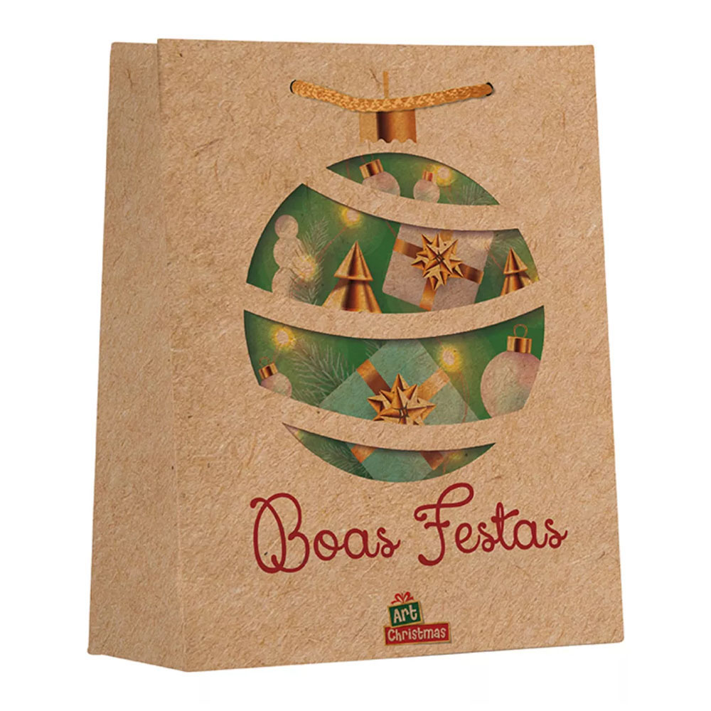 Sacola p/ Presente Natal Pardo 30x40x10cm 1und Sortido Zein