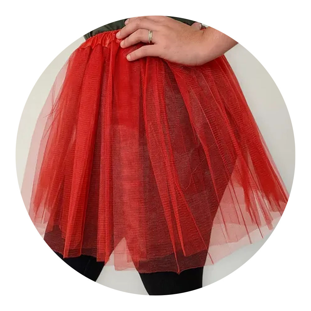 A saia de tule lisa de 40cm é uma escolha vibrante e festiva para uma fantasia de Carnaval.