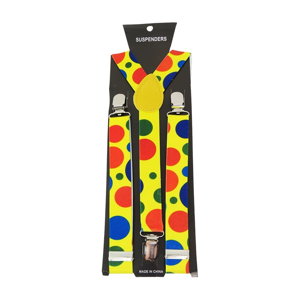 Suspensório Palhaço Amarelo c/ Bolas Coloridas Fantasia