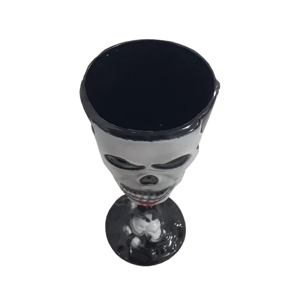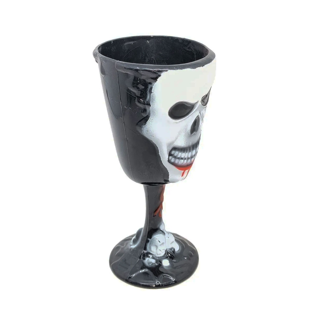 A Taça Esqueleto Caveira Sangrenta Preto Halloween é fabricada em materiais de qualidade para ficar super bonita na sua decoração. Ele vem em uma taça com um formato de vinho com um fundo totalmente em preto, uma base com detalhes de caveiras pequenas e na parte superior na parte da frente o detalhe de uma caveira grande com os olhos e o nariz e um detalhe em vermelho de sangue escorrendo pela boca.