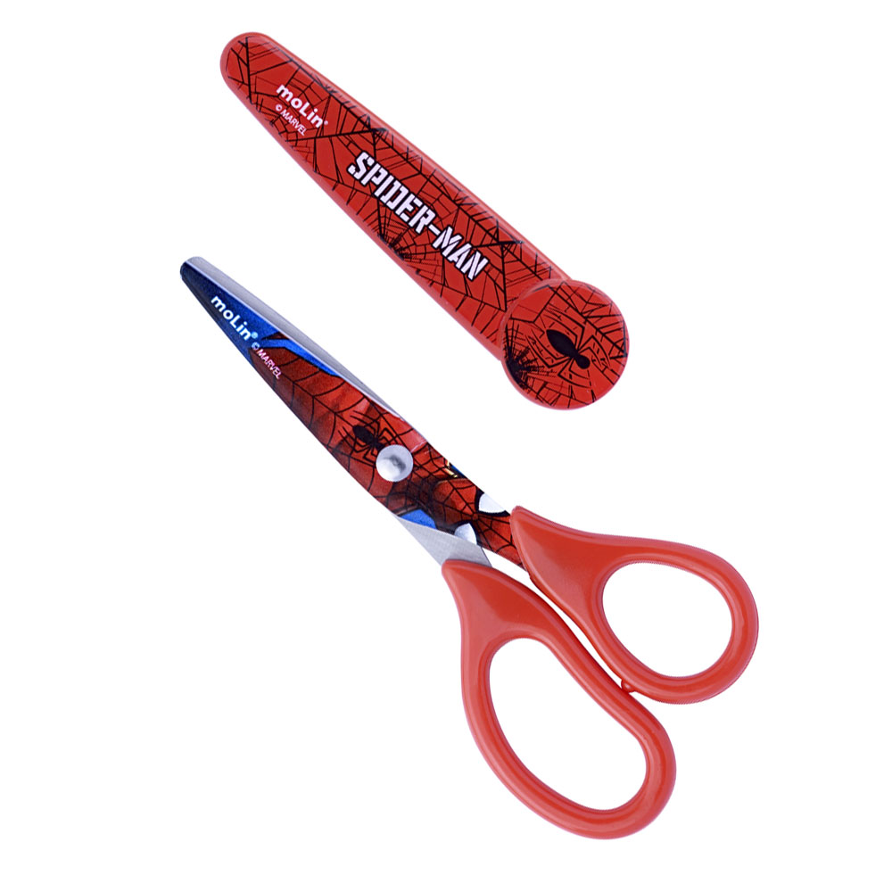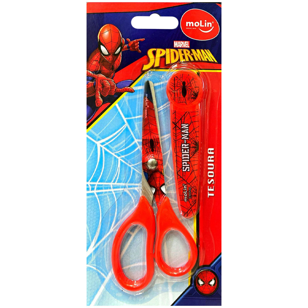 Tesoura escolar 13,5cm c/protetor homem aranha vermelho