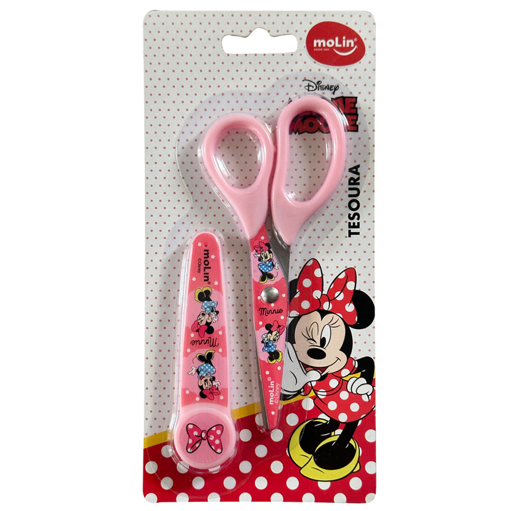 Tesoura escolar 13,5cm c/protetor minnie rosa