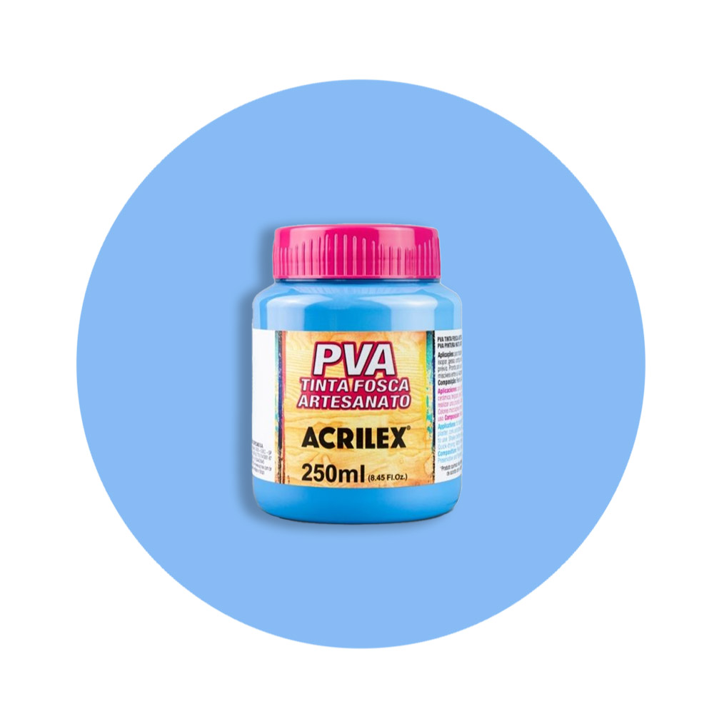 Tinta PVA fosca artesanato 1 unidade 250ml, é ideal para trabalhos artesanais sobre madeira, gesso, MDF, cerâmica, cortiça, isopor, papel, palha e PET; pode ser aplicada com pincel, esponja ou rolinho de espuma, com secagem rápida e acabamento fosco.