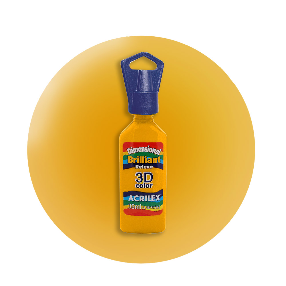 Tinta com efeito relevo dimensional brilhante, pode ser usado em qualquer tipo de material poroso e aderente, como tecidos de algodão, madeira, cerâmica, gesso, papel, papelão, isopor, etc.