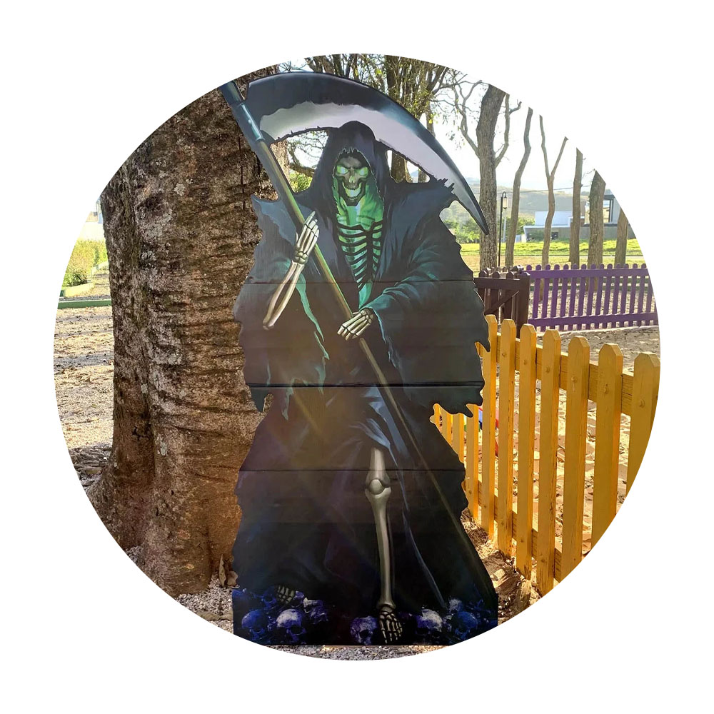 Agora a decoração da sua festa ou evento ficará ainda mais divertida e interativa para seus convidados com o Totem Halloween. O Totem Gigante é o produto perfeito para adicionar um toque assustador e elegante à sua festa de Halloween. Com um design realista e detalhado, ele é capaz de criar uma atmosfera de suspense e terror para os seus convidados.
